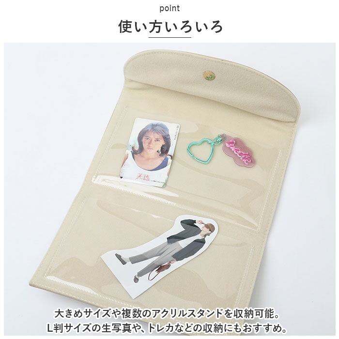 ・大きめサイズや複数のアクリルスタンドを収納可能。L判サイズの生写真や、トレカなどの収納にもおすすめ。