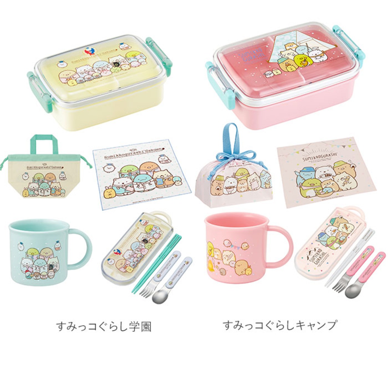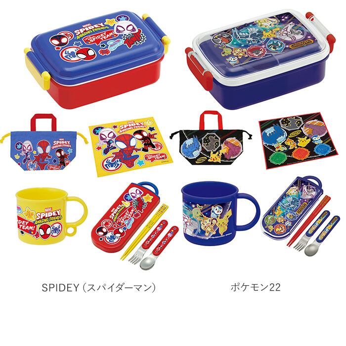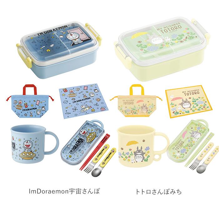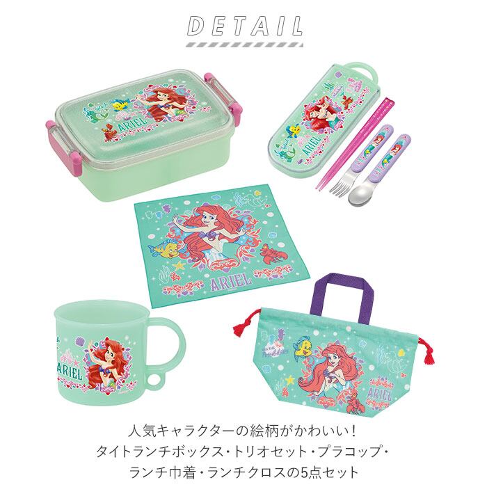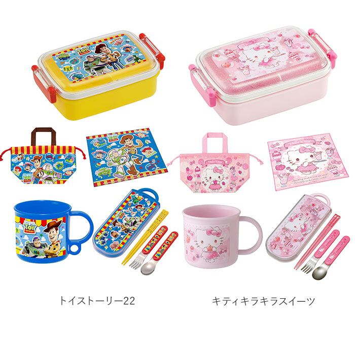・人気キャラクターの絵柄がかわいい!タイトランチボックス・トリオセット・プラコップ・ランチ巾着・ランチクロスの5点セット。