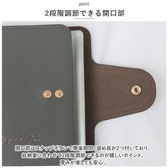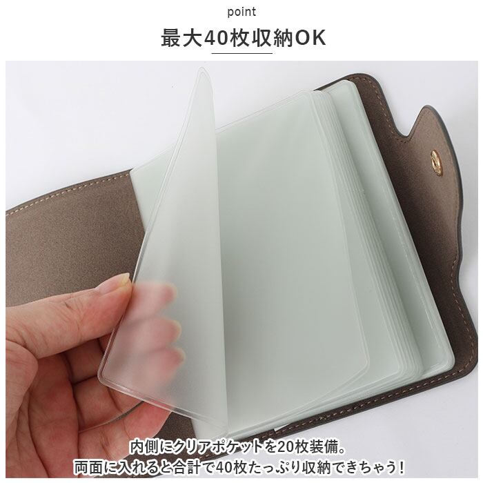 ・内側にクリアポケットを20枚装備。両面に入れると合計で40枚たっぷり収納できちゃう!