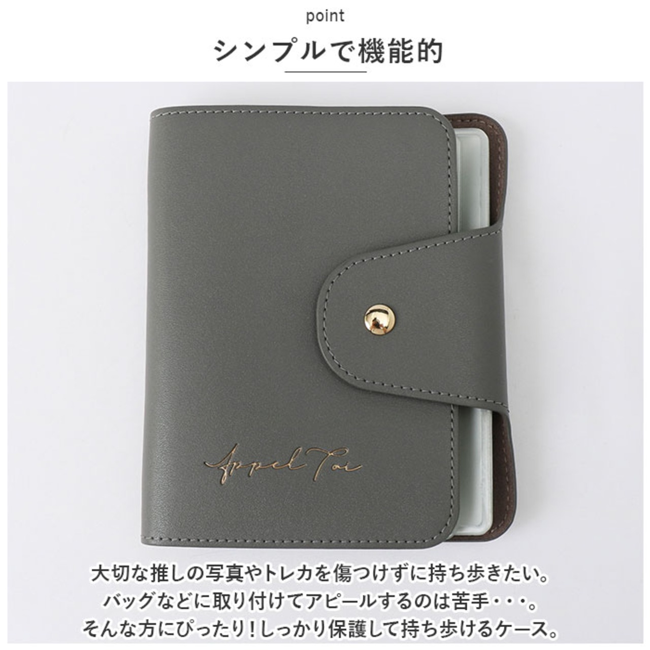 ・大切な推しの写真やトレカを傷つけずに持ち歩きたい。バッグなどに取り付けてアピールするのは苦手・・・。そんな方にぴったり!しっかり保護して持ち歩けるケース。