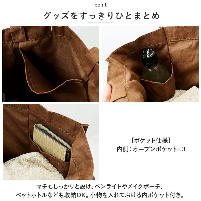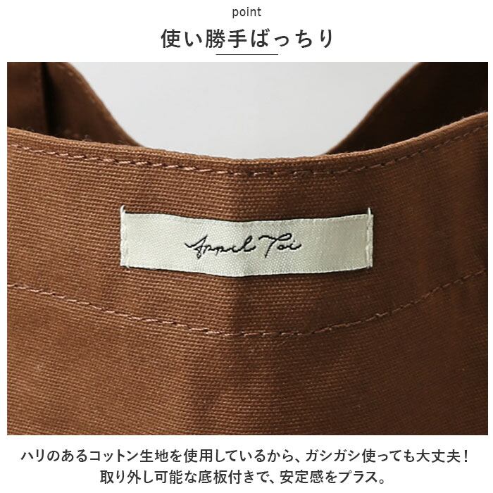 ・ハリのあるコットン生地を使用しているから、ガシガシ使っても大丈夫!取り外し可能な底板付きで、安定感をプラス。