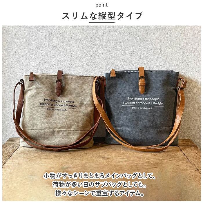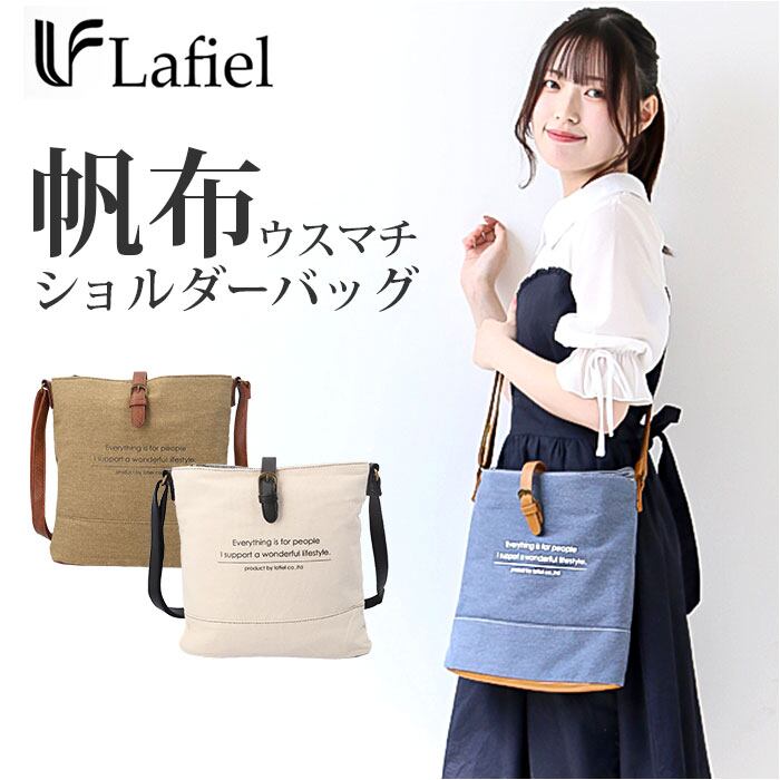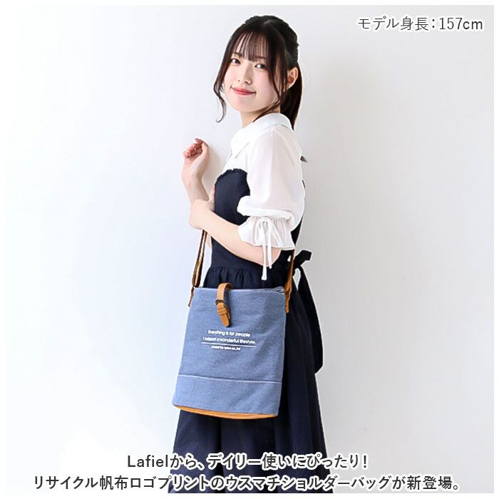 ラフィール バッグ Lafiel 003161300 通販 ショルダーバッグ ショルダーバック レディース 斜めがけ 大人 大きめ 可愛い 縦長 縦型 通学 通勤 サブバッグ おしゃれ シンプル リサイクル帆布 ロゴプリント レディースバッグ
