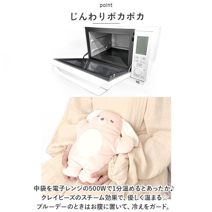 ・中袋を電子レンジの500Wで1分温めるとあったか♪クレイビーズのスチーム効果で、優しく温まる☆ブルーデーのときはお腹に置いて、冷えをガード。