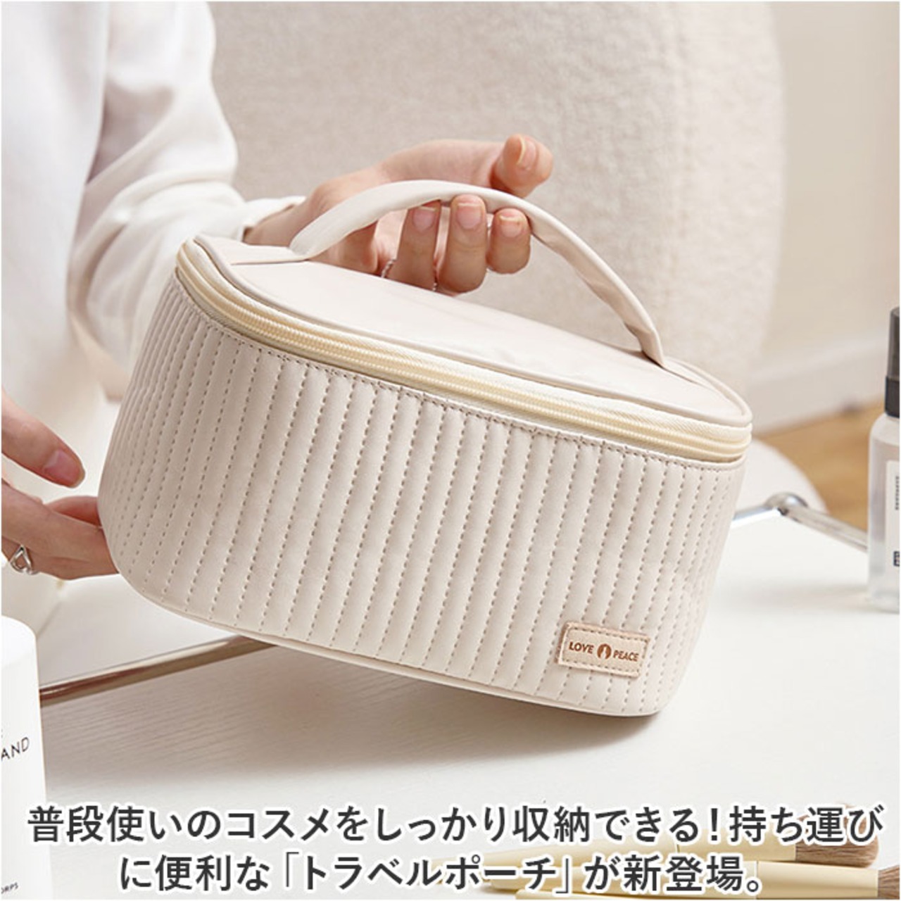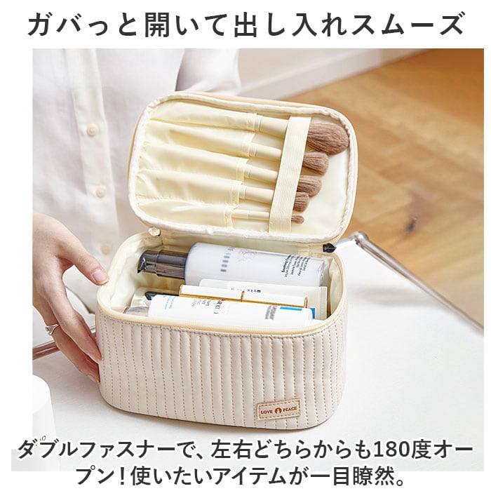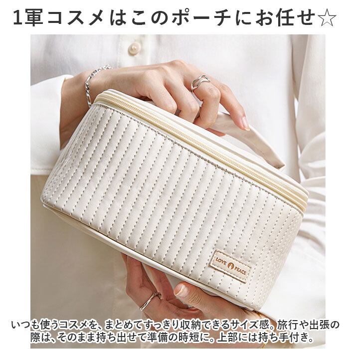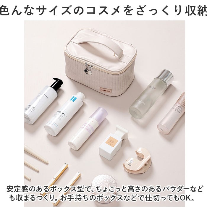 ・いつも使うコスメを、まとめてすっきり収納できるサイズ感。旅行や出張の際は、そのまま持ち出せて準備の時短に。上部には持ち手付き。