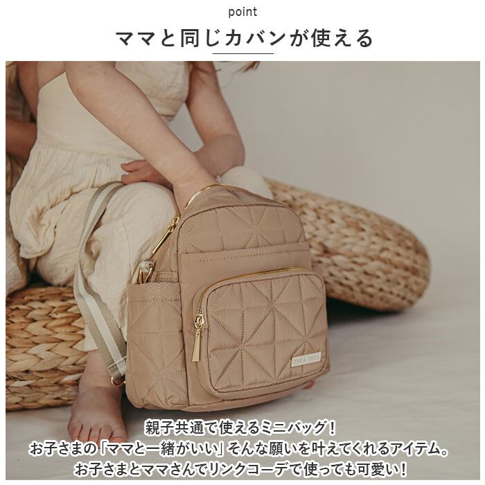 ・親子共通で使えるミニバッグ!お子さまの「ママと一緒がいい」そんな願いを叶えてくれるアイテム。お子さまとママさんでリンクコーデで使っても可愛い!