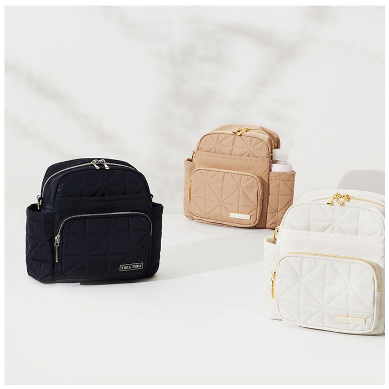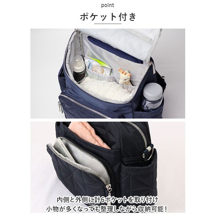 ・表面の生地はトレンド感のあるキルティング生地。金具のゴールドカラーがアクセントに◎ベーシックなカラーを採用しママもお子さまも使いやすいおしゃれアイテム。
