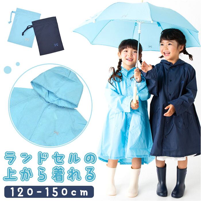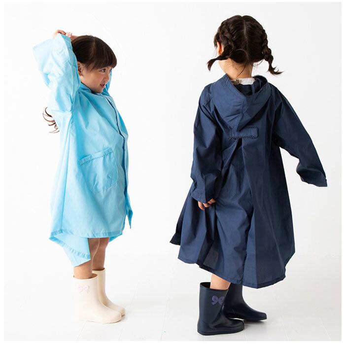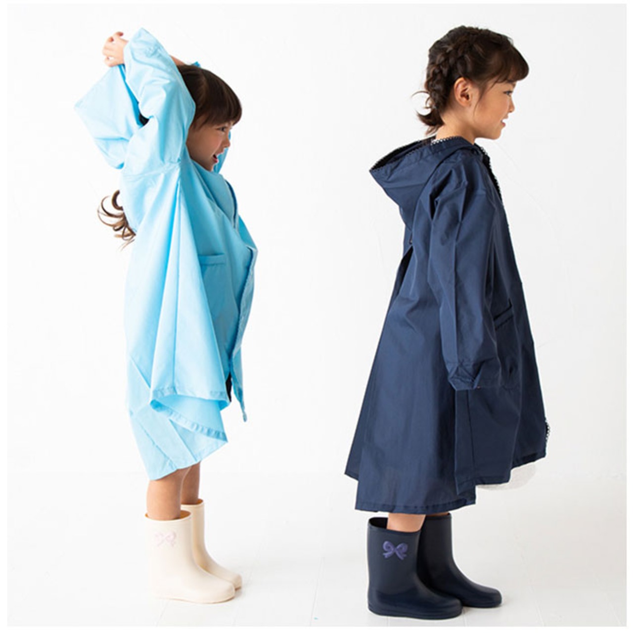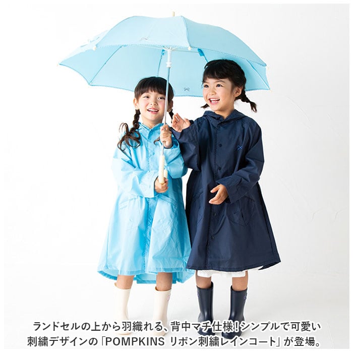 ・ランドセルの上から羽織れる、背中マチ仕様!シンプルで可愛い刺繍デザインの「POMPKINS リボン刺繍レインコート」が登場。