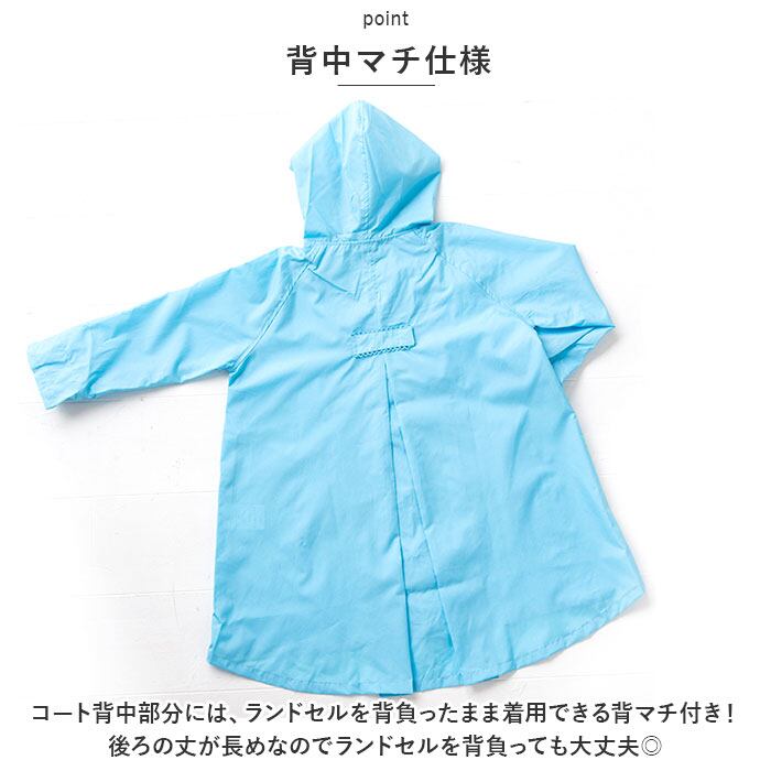 ・コート背中部分には、ランドセルを背負ったまま着用できる背マチ付き!後ろの丈が長めなのでランドセルを背負っても大丈夫◎