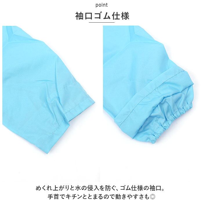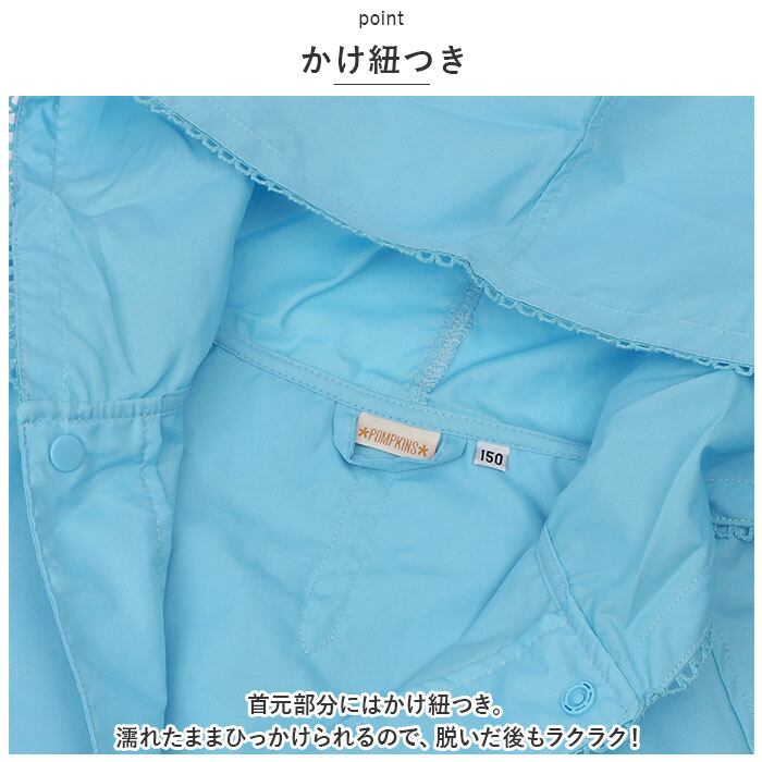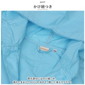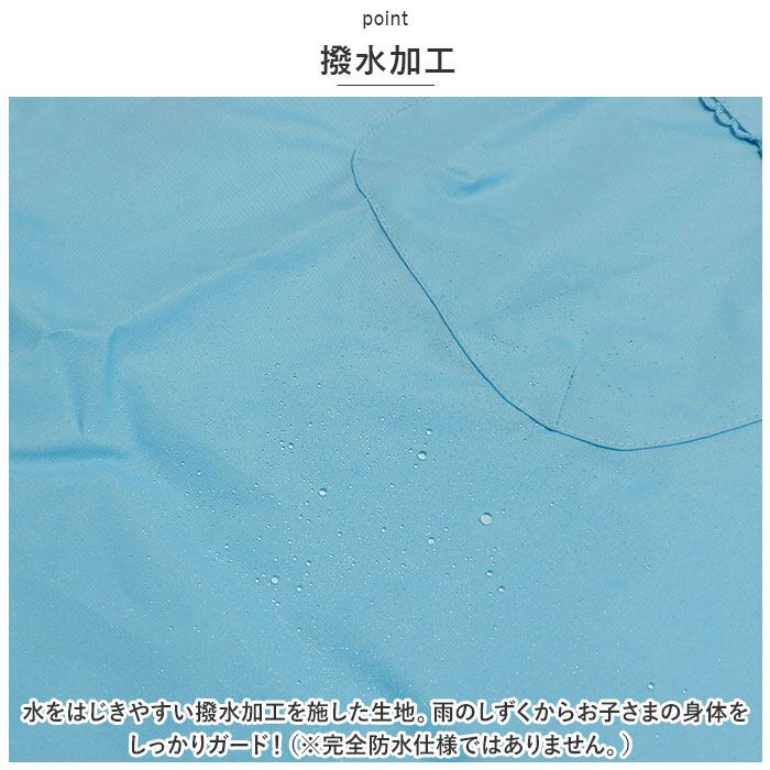 ・水をはじきやすい撥水加工を施した生地。雨のしずくからお子さまの身体をしっかりガード!(※完全防水仕様ではありません。)