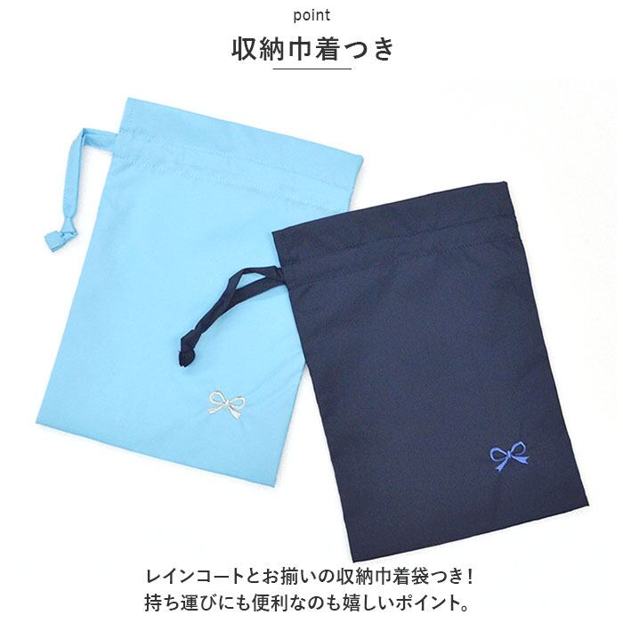・レインコートとお揃いの収納巾着袋つき!持ち運びにも便利なのも嬉しいポイント。