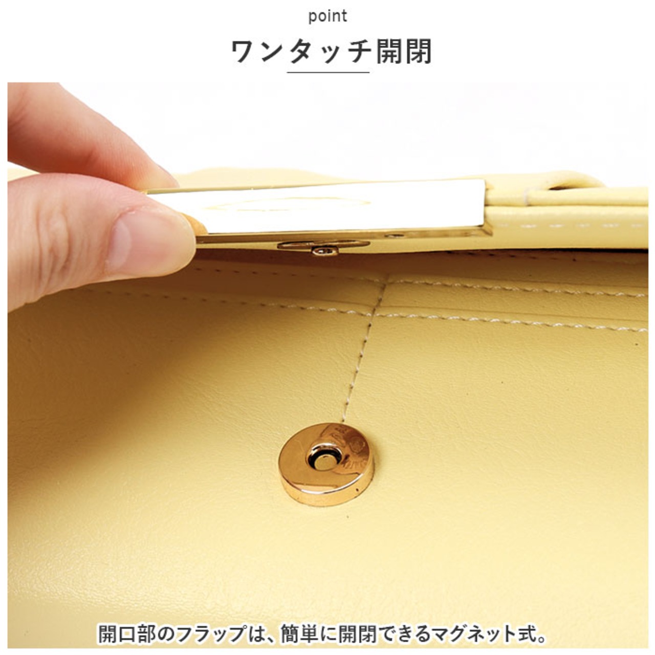 ・開口部のフラップは、簡単に開閉できるマグネット式。