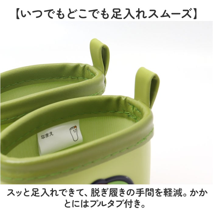 ・スッと足入れできて、脱ぎ履きの手間を軽減。かかとにはプルタブ付き。