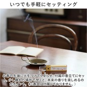 ・お香の先端に火をつけてくゆらせ、付属の香立てにセット。少し離れた場所で焚くと、本来の香りを楽しめるのがポイント。(※香皿は付属しておりません。)