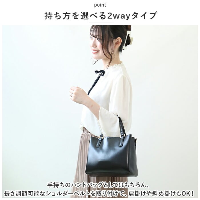 ・大人女子にぴったり♪お出かけに大活躍の「ソフト合皮あおり2WAYトート」が新登場。