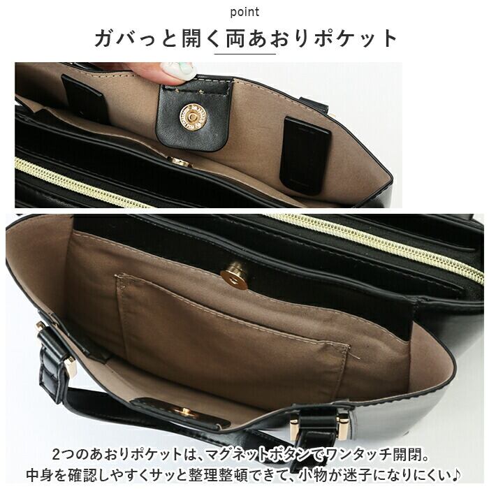 ・2つのあおりポケットは、マグネットボタンでワンタッチ開閉。中身を確認しやすくサッと整理整頓できて、小物が迷子になりにくい♪