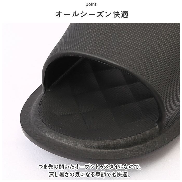 ・つま先の開いたオープントゥスタイルなので、蒸し暑さの気になる季節でも快適。