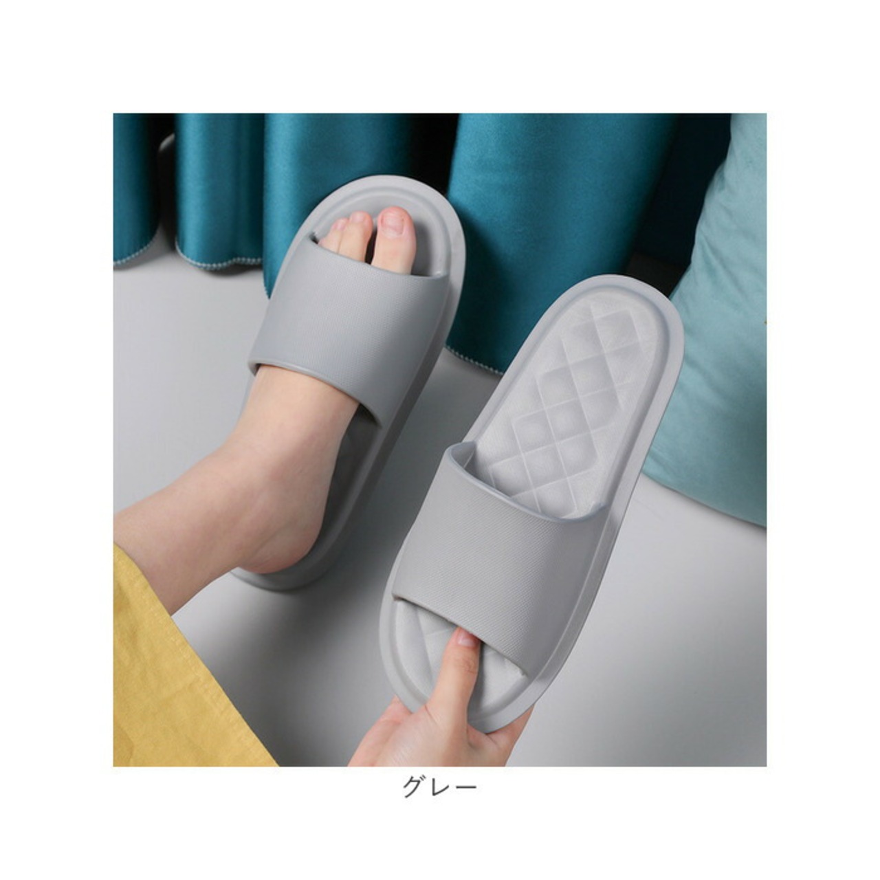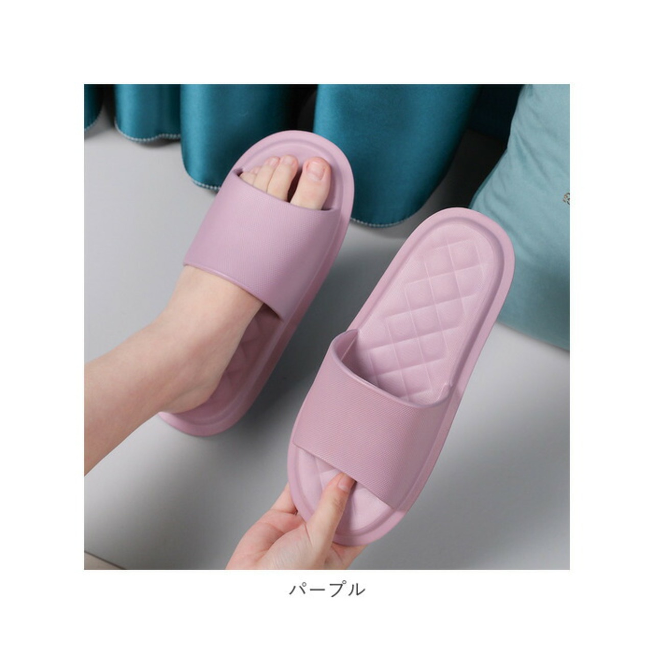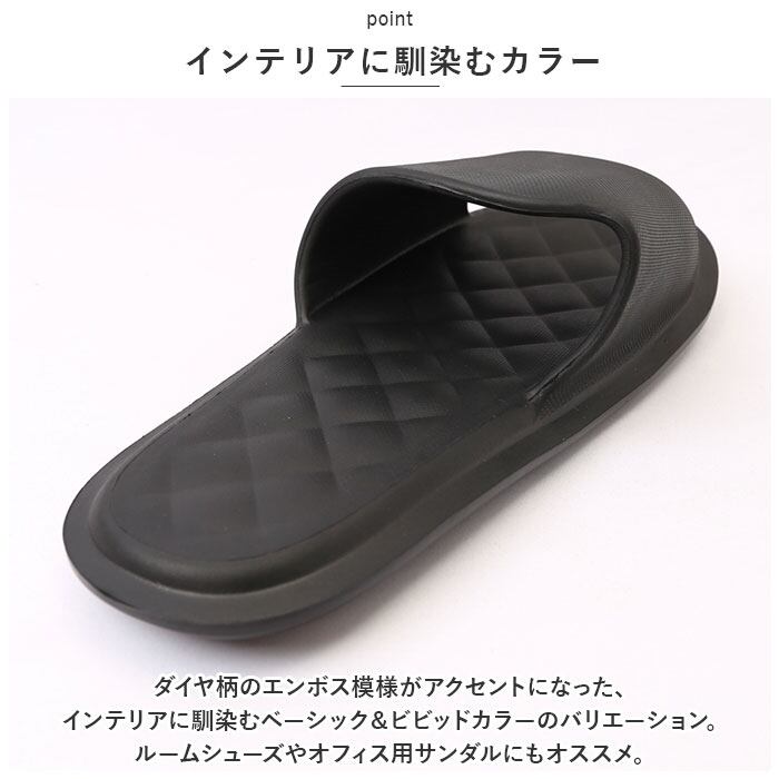 ・ダイヤ柄のエンボス模様がアクセントになった、インテリアに馴染むベーシック&ビビッドカラーのバリエーション。ルームシューズやオフィス用サンダルにもオススメ。
