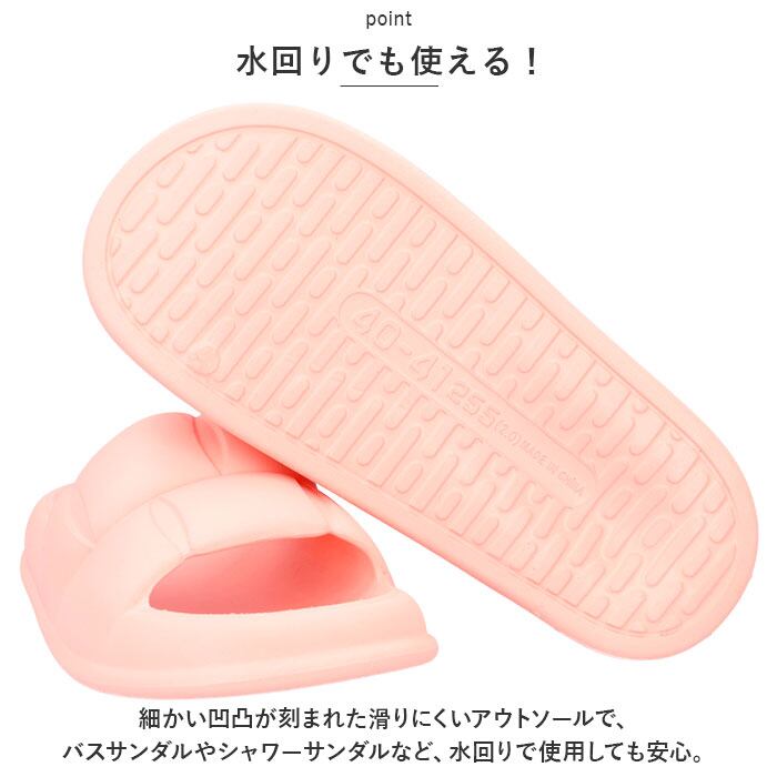 ・細かい凹凸が刻まれた滑りにくいアウトソールで、バスサンダルやシャワーサンダルなど、水回りで使用しても安心。