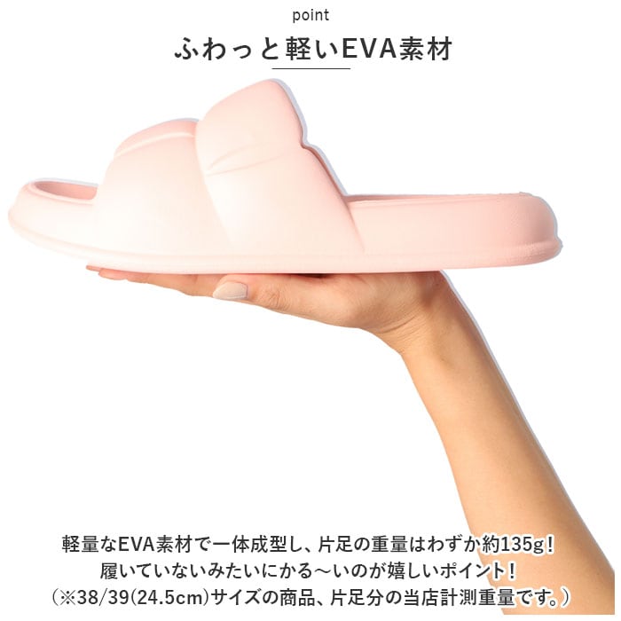 ・軽量なEVA素材で一体成型し、片足の重量はわずか約135g!履いていないみたいにかる~いのが嬉しいポイント!(※38/39(24.5cm)サイズの商品、片足分の当店計測重量です。)