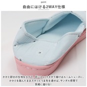 ・かかと部分の生地を立てて、足にフィットさせて履けばルームシューズに。かかとを踏んだままスポッとつま先を通せば、サンダル感覚で気軽に履ける!
