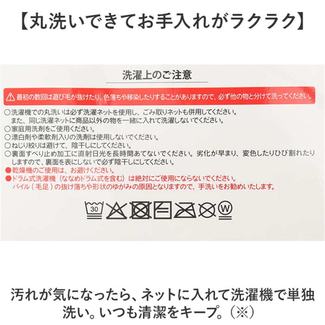 (※)洗濯機の弱モード使用。ドラム式洗濯機は、ご使用にならないでくだいさい。