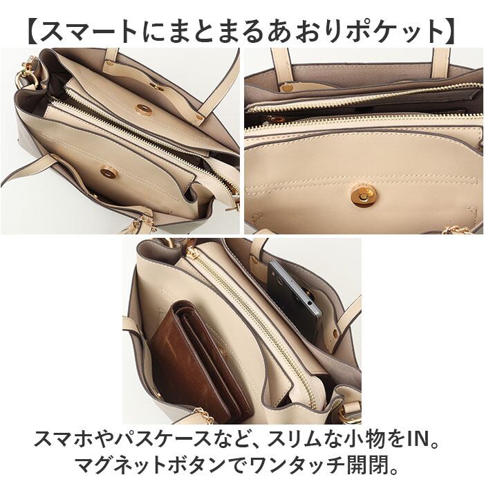 ・内側に2つのポケットを配置。細々した物も、バッグの中で探す手間が不要。