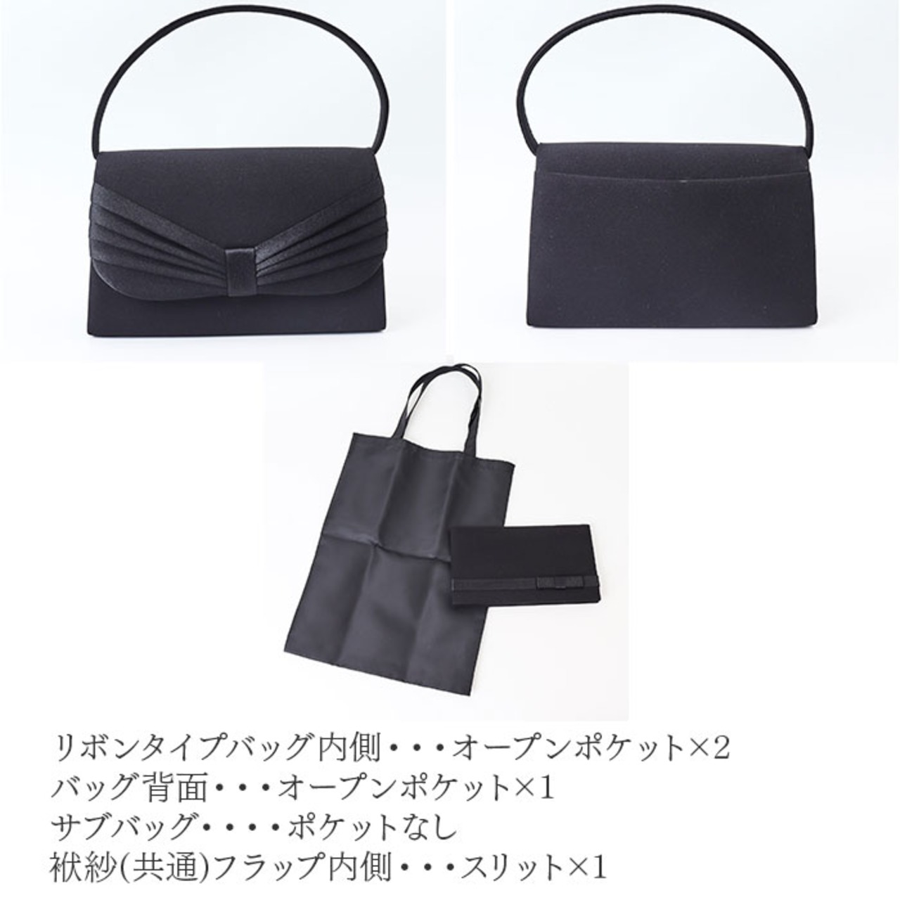 ・バッグ本体・・・葬儀にも使える落ち着いたデザイン。オープンポケット内外側に1個配置。