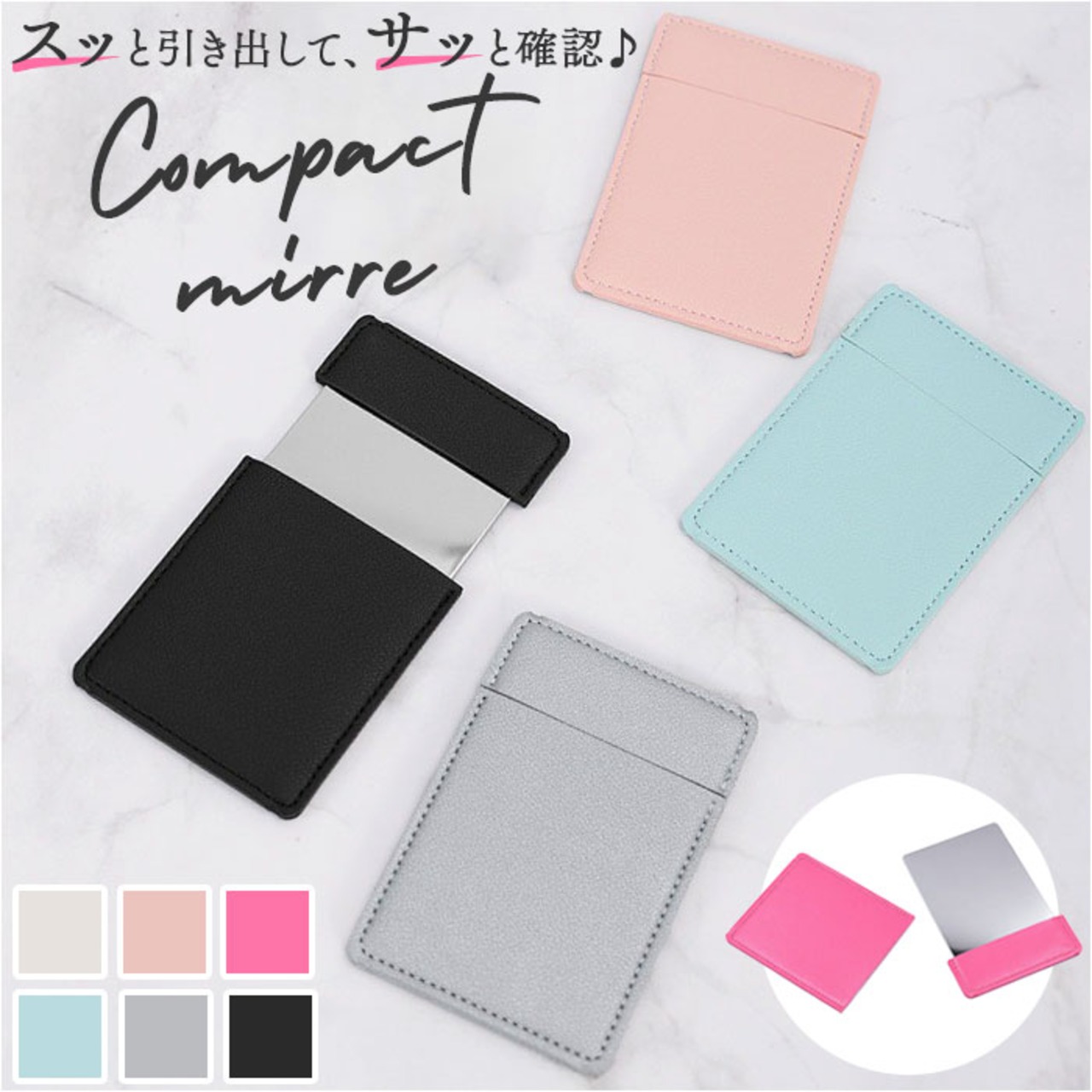 ・ポーチやポケットに入れておいても、鏡面が傷つきにくく、ホコリなどからもガード。
