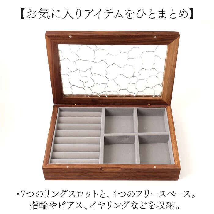 ・7つのリングスロットと、4つのフリースペース。指輪やピアス、イヤリングなどを収納。