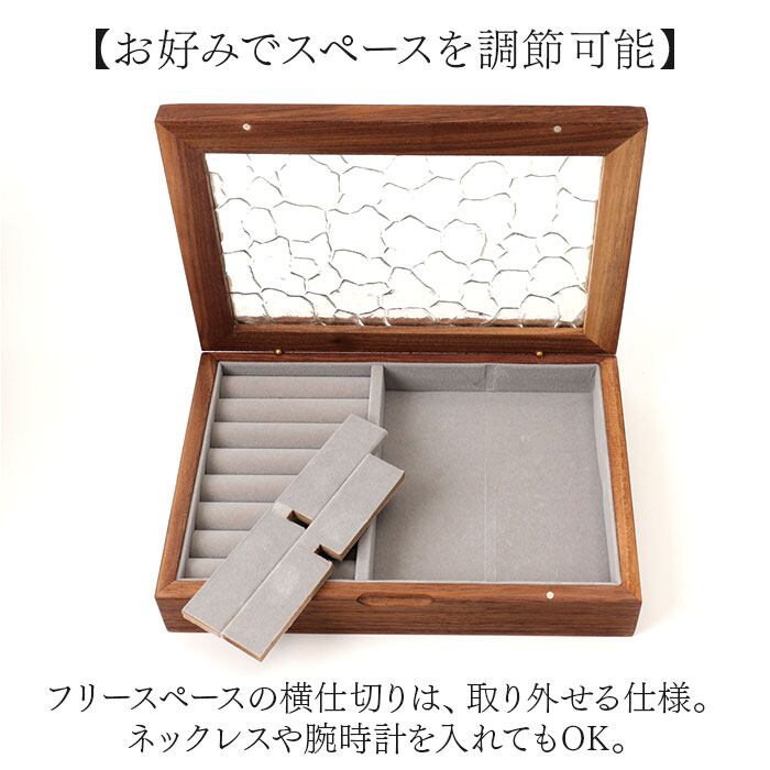 ・フリースペースの横仕切りは、取り外せる仕様。ネックレスや腕時計を入れてもOK。