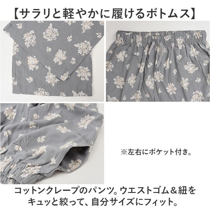 ・コットンクレープのパンツ。ウエストゴム&紐をキュッと絞って、自分サイズにフィット。