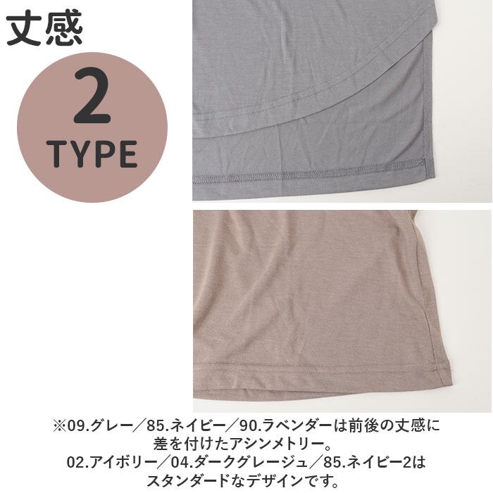 (※3)09.グレー/85.ネイビー/90.ラベンダーは前後の丈感に差を付けたアシンメトリー。02.アイボリー/04.ダークグレージュ/85.ネイビー2はスタンダードなデザインです。