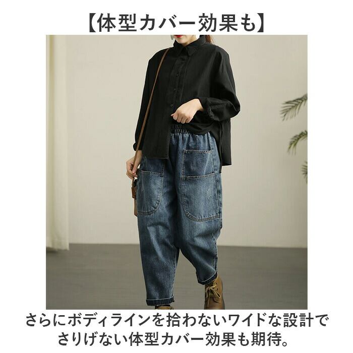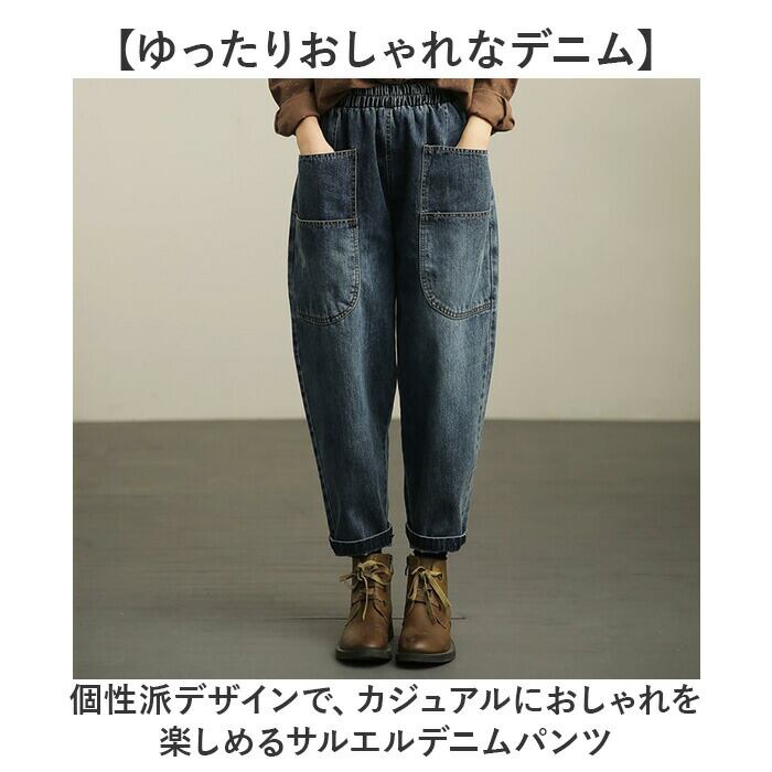 ・個性派デザインで、カジュアルにおしゃれを楽しめるサルエルデニムパンツ
