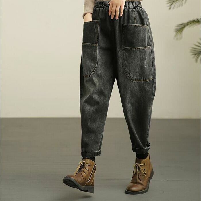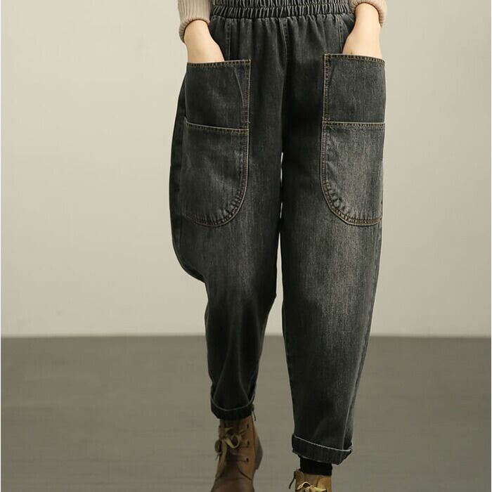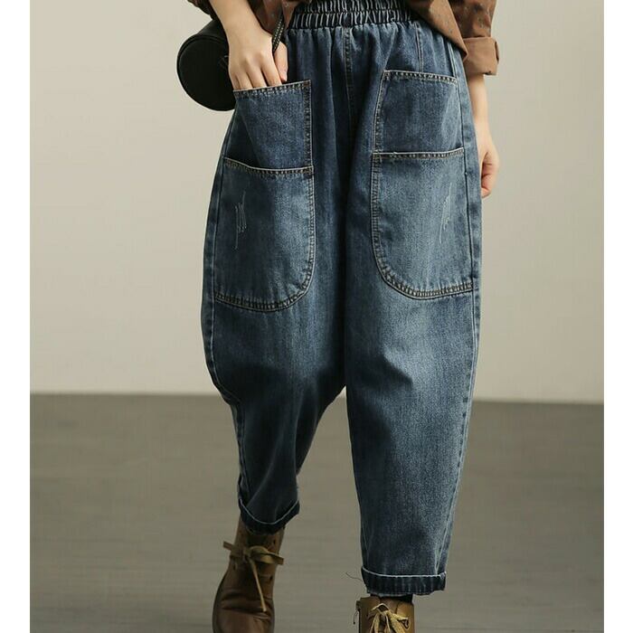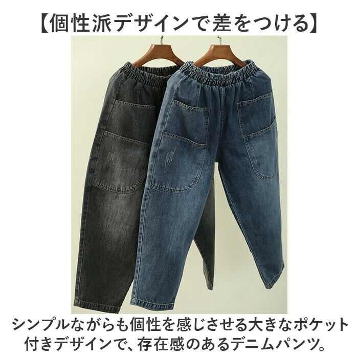 ・シンプルながらも個性を感じさせる大きなポケット付きデザインで、存在感のあるデニムパンツ。