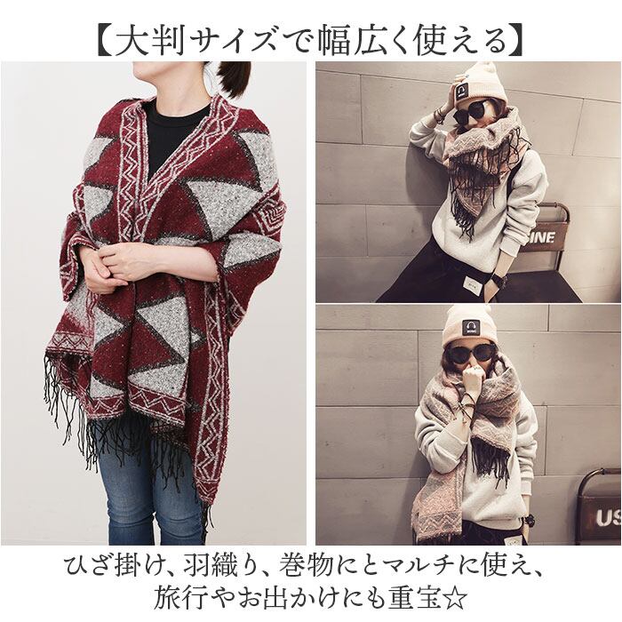 ・ひざ掛け、羽織り、巻物にとマルチに使え、旅行やお出かけにも重宝☆
