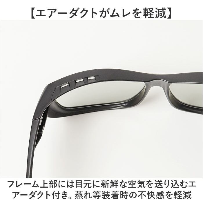 ・超軽量フレーム&テンプルでメガネの上から掛けても目元に重たさを感じさせない軽い掛け心地