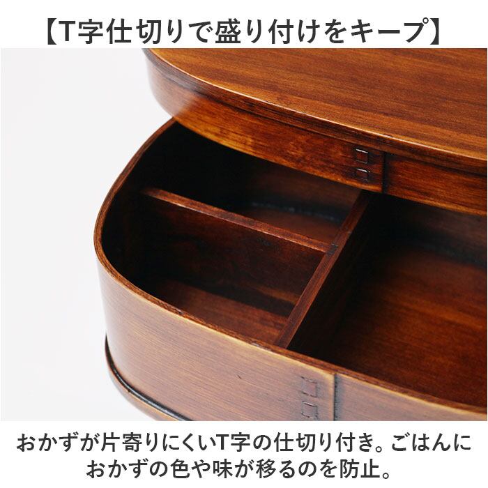 ・おかずが片寄りにくいT字の仕切り付き。ごはんにおかずの色や味が移るのを防止。