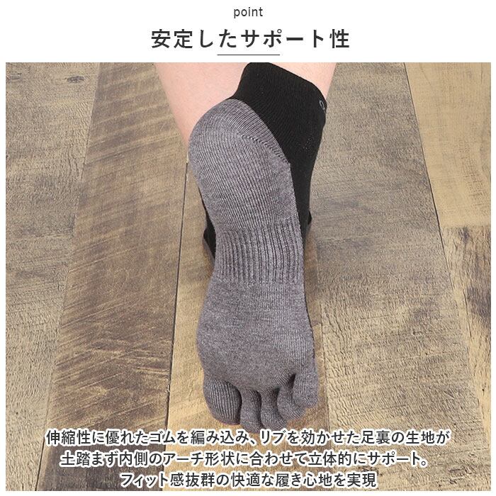 ・各指の大きさに合わせて、指の下側を立体的なマチ編みで仕上げた「超立体編み加工」を採用!足と靴とのつながりを最適化し、快適に走れる5本指タイプ。
