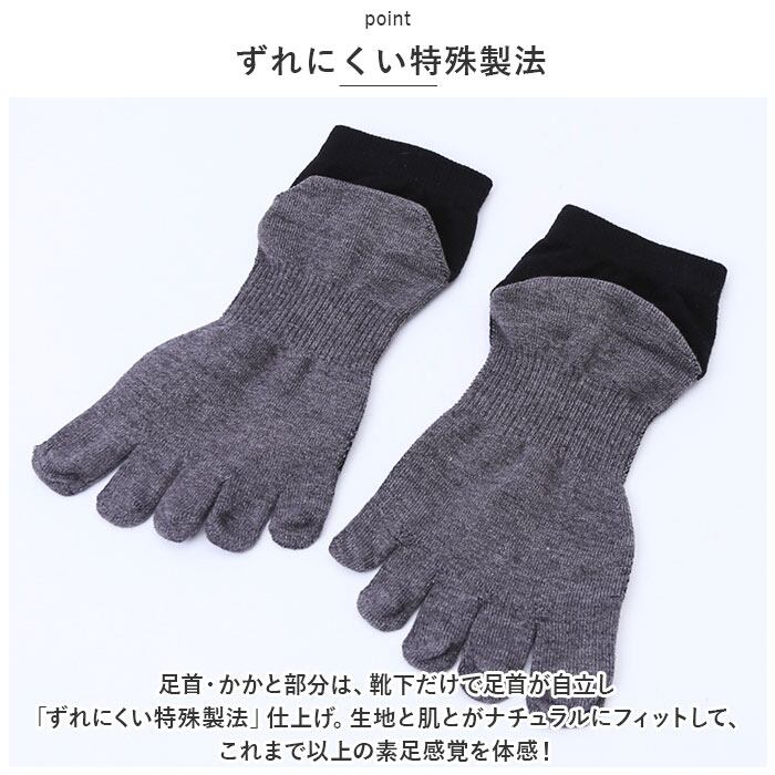 ・足首・かかと部分は、靴下だけで足首が自立し「ずれにくい特殊製法」仕上げ。生地と肌とがナチュラルにフィットして、これまで以上の素足感覚を体感!
