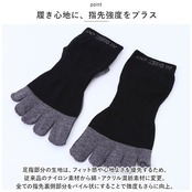 ・足指部分の生地は、フィット感や心地よさを優先するため、従来品のナイロン素材から綿+アクリル混紡素材に変更。全ての指先裏側部分をパイル状にすることで強度もさらに向上。