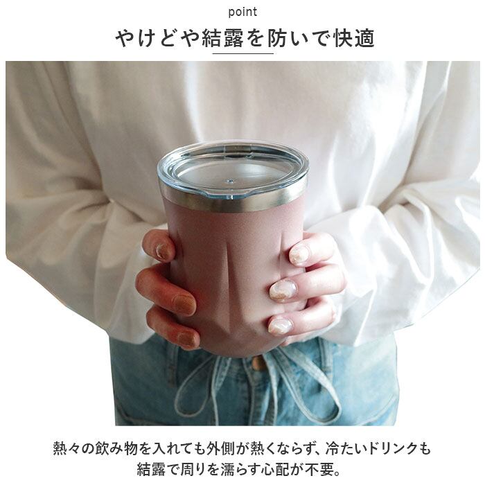 ・熱々の飲み物を入れても外側が熱くならず、冷たいドリンクも結露で周りを濡らす心配が不要。