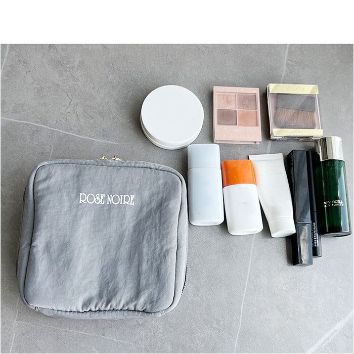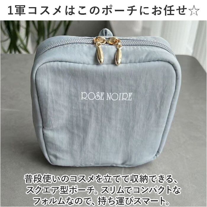 ・普段使いのコスメを立てて収納できる、スクエア型ポーチ。スリムでコンパクトなフォルムなので、持ち運びスマート。
