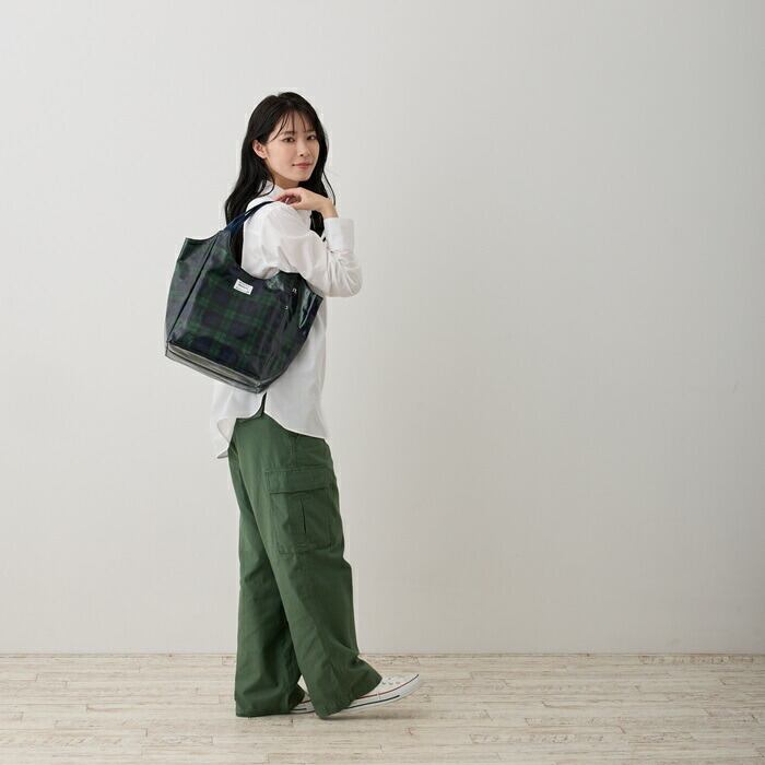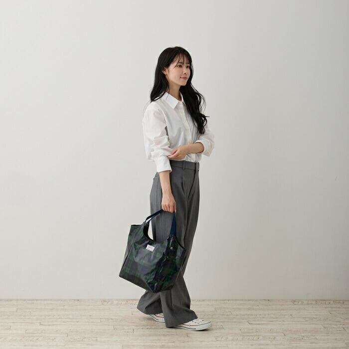 表地:綿 ノンフタル酸PVCラミネート加工/裏地:ポリエステル/持ち手:ポリエステル