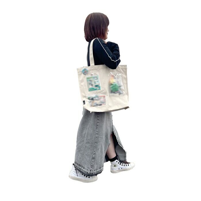 ・キャンバストートだから、お気にいりの缶バッジも本体にたっぷり付けられます。