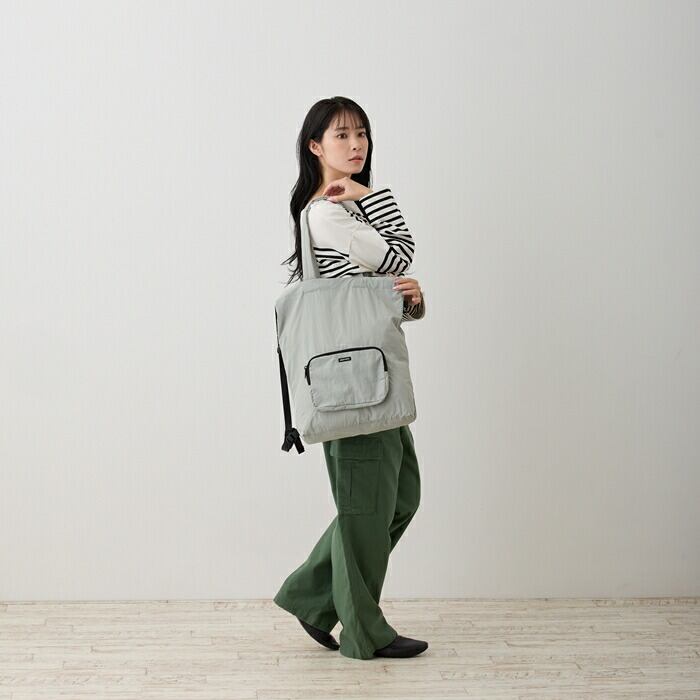 ・外ポケットにさっと折りたたむとトートバッグになる遊び心のあるデザイン。