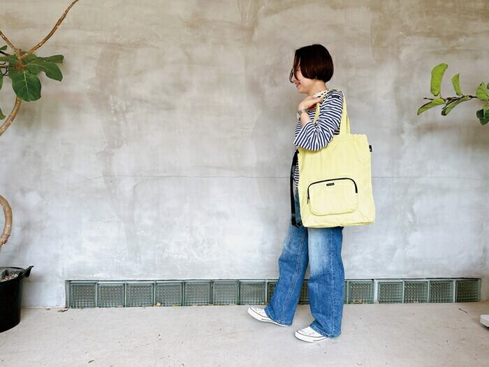 ・フラットなトートとしても、口元を絞って可愛らしく巾着トートとしても。
