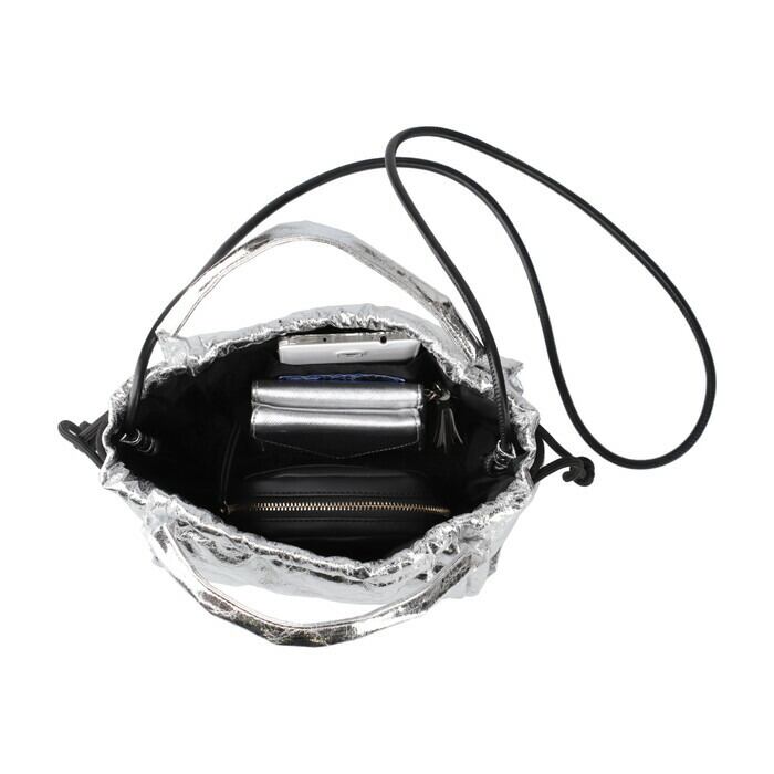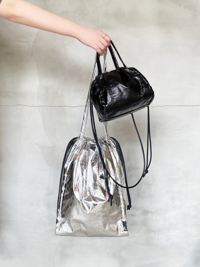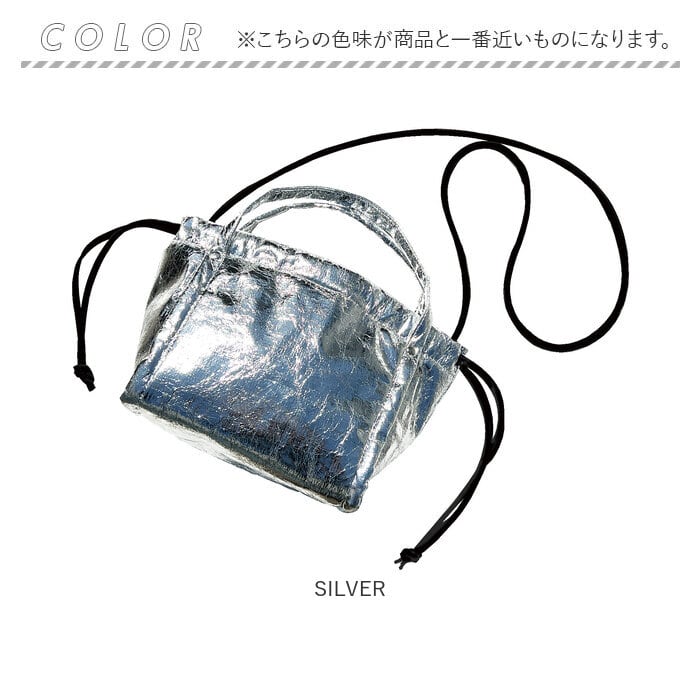 ショルダー:合成皮革/巾着紐:ポリエステル/留め具:マグネットホック