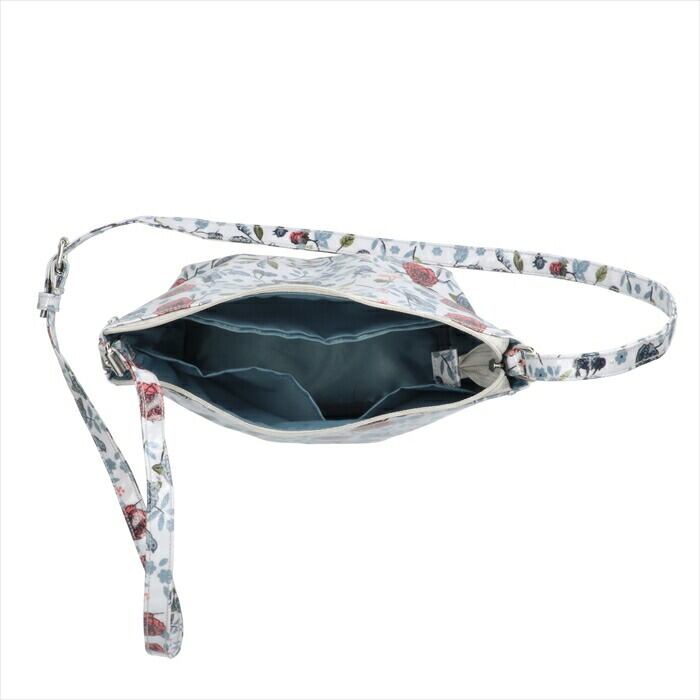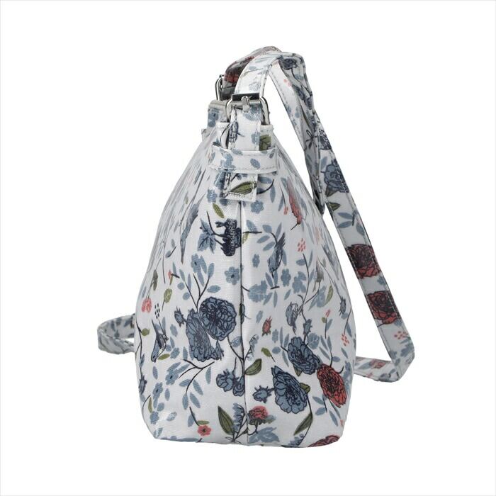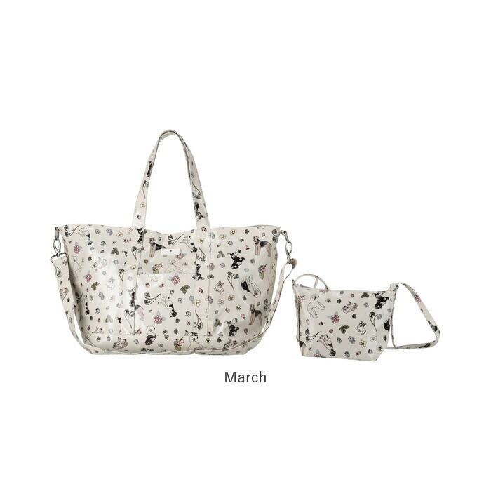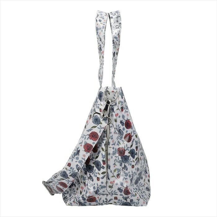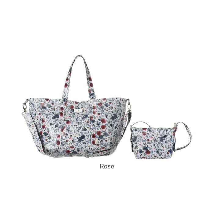 ・肩掛け・斜め掛けの2WAY、内外に大小9つのポケット、同柄のポーチ付きの多機能バッグ。付属ポーチは2本のハンドル付き。短いハンドルをつければ、ワンハンドルのバッグとして…。2本を組み合わせてポシェットとして…。