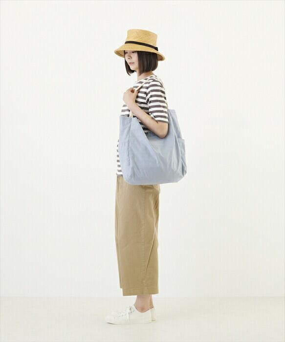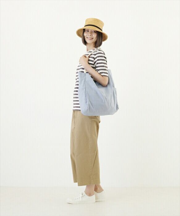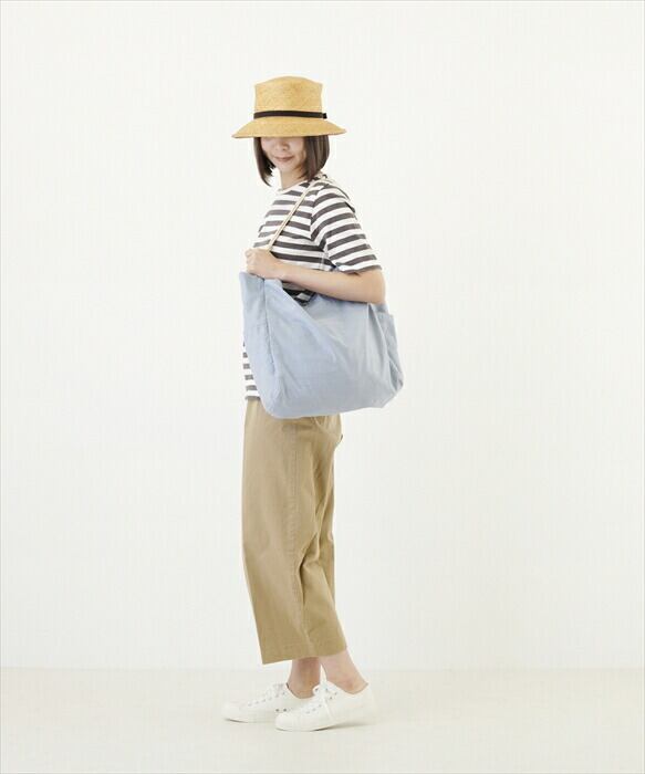・持ち手は肩に掛けても手に持ってもバランスの良い長さ。たっぷり容量サイズに華奢な持ち手の組み合わせ。肩に掛けた時、自然に生地が寄り、くたっと馴染みの良い形状となります。