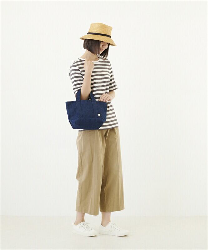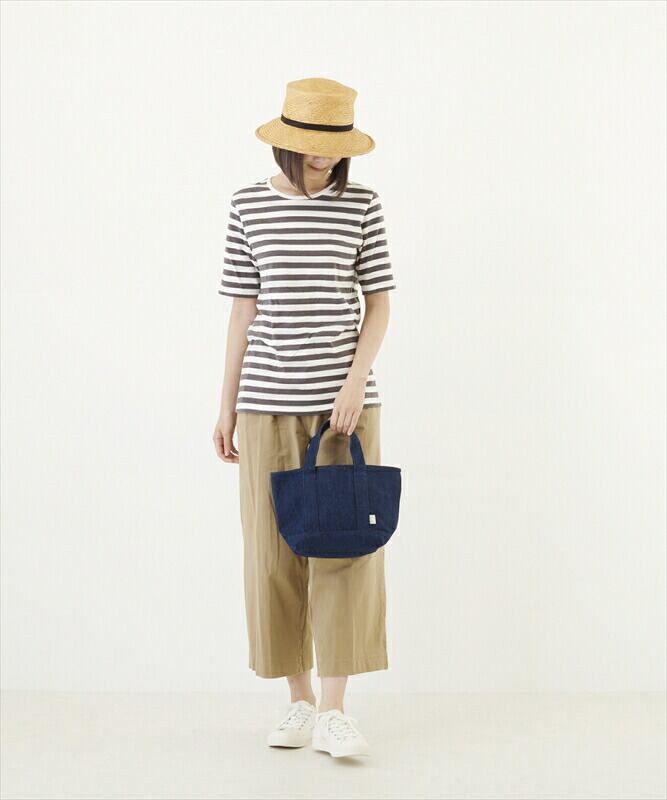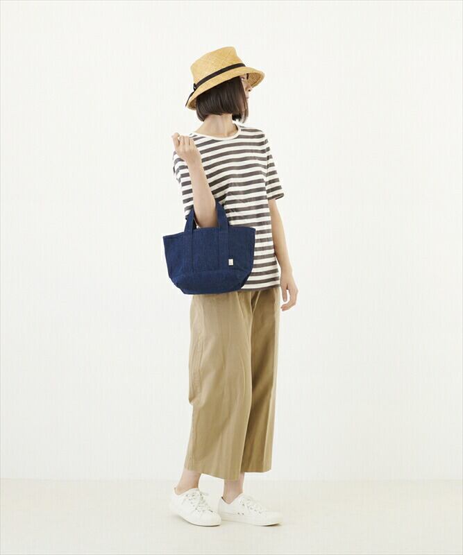 ・内側生地を重ねて、しっかりとした、カジュアルになりすぎない仕上がり。無駄を省いた形状にデニム素材が活きる!シンプルだけど、オシャレで機能的。チャームやスカーフなど、お手持ちのアクセサリーが映え、表情を変えて楽しむことも…。